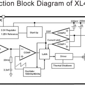 The XL4016 is a 180 kHz fixed frequency PWM buck (step-down) DC/DC converter, capable of driving a 8A load with high efficiency, low ripple, and excellent line and load regulation. Requiring a minimum number of external components, the regulator is simple to use and include internal frequency compensation and a fixed-frequency oscillator.