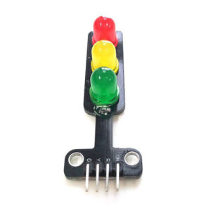 The module comes with three 5mm LEDs in the traditional traffic light arrangement: Red at the top, Yellow in the middle, and Green at the bottom. This makes it an ideal tool for building realistic traffic control systems, classroom demonstrations, or robotics projects that require traffic signaling.