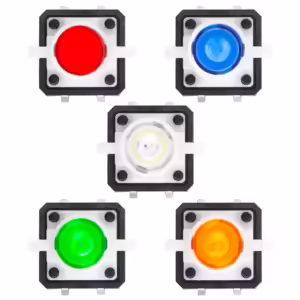 This 25-piece set of 12mm × 12mm × 7.3mm tactile push buttons includes 5 vibrant colors (Black/Red/Green/Blue/Yellow), perfect for breadboards, PCBs, and control panels. These 4-pin momentary switches offer a crisp tactile click and reliable performance for countless projects.