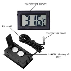 The Digital Thermometer Sensor LCD Display – Waterproof Probe is a must-have device for anyone needing reliable temperature monitoring. With its high accuracy, waterproof probe, and easy-to-read LCD display, it is perfect for aquariums, incubators, refrigerators, greenhouses, and DIY electronics projects.